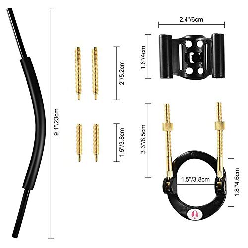 パッケージから本体を取り出して組み立てるとこんな感じです。おわかりかと思いますが、下側の丸いリングにペニスの根元を通し、上側に付いているシリコンチューブで亀頭の縁を引っかけます。牽引する長さは左右のロッドに付いている微調整ネジで調節することができ、またこのロッド自体はペニスの角度に合わせて根元から自由に動くようになっています。