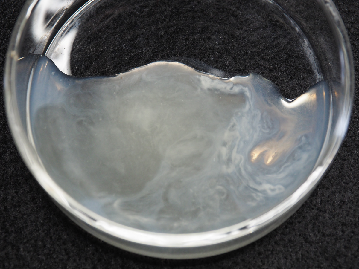 あの画像に興奮されたとは意外な感じがします。量は少なめですが、確かに分離具合ははっきりわかりますね。コツとしては射精したらできるだけすぐに撮影することですね。精液はあっという間に融解して混じっていきますので、時間との勝負なのです。まさに精液は一期一会の芸術作品ですね。